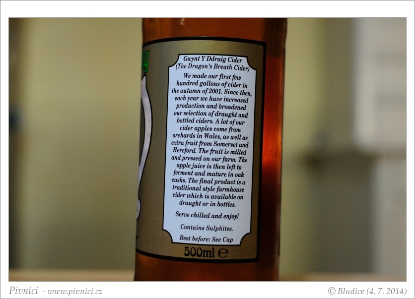 Sladší, ale velmi dobře pitelný cider.Minimální trvanlivost: 30. listopadu 2015