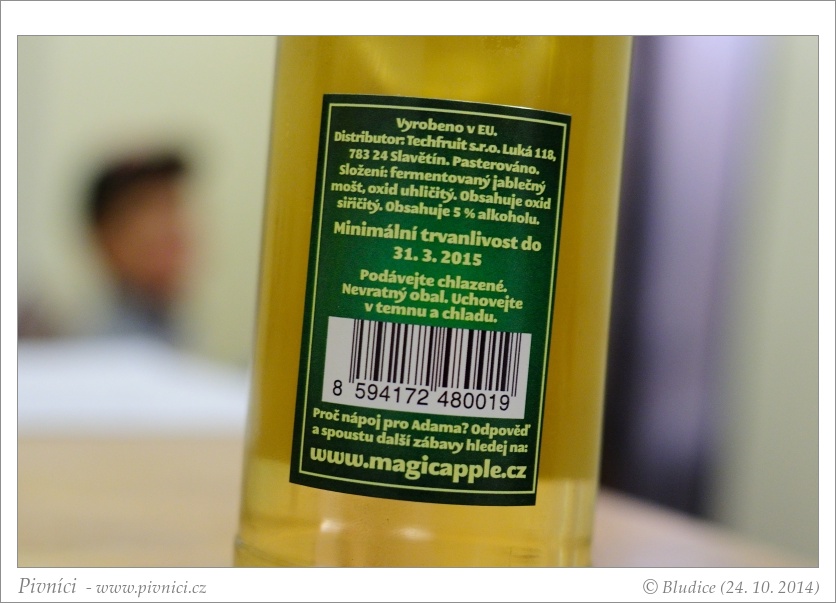 Složení: fermentovaný jablečný mošt, oxid uhličitý, obsahuje oxid siřičitý, pasterováno