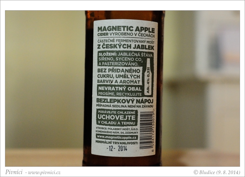 Celkem dobře pitelný cider. Dá se. Mohl by být trochu méně sladký.Minimální trvanlivost: 31. prosince 2014