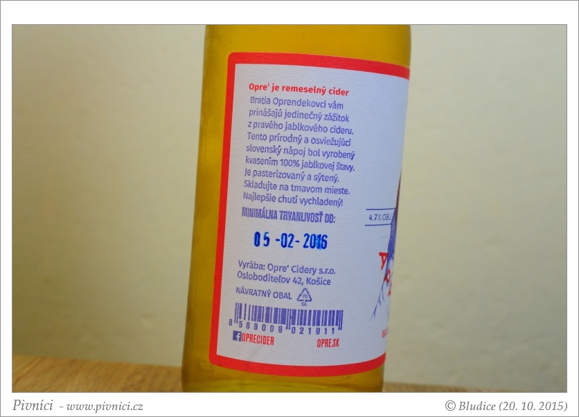 Trochu sladší, ale celkem pitelný Cider.Minimální trvanlivost: 5. února 2016