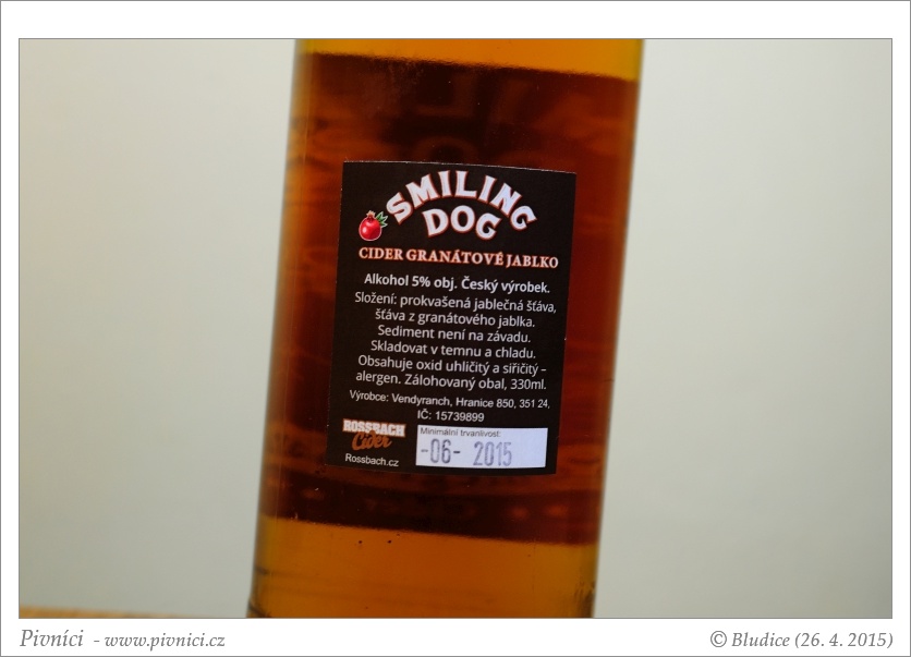 … cider od Rossbacha, tentokráte jde o Smiling Dog Pomegranate, cider se šťávou z granátového jablka. Je jablečný, s …