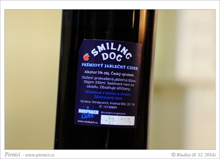 Dobře pitelný sladší cider.Minimální trvanlivost: 31. ledna 2015