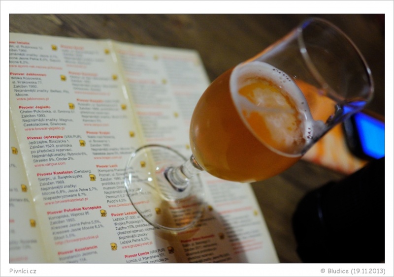 A poslední přišel Golden Monk, který ve Zlých časech měl svoji premiéru (v Polsku bude předveden až zítra). Jde o kombinaci americké India Pale Ale a belgického Saisonu, v posledních letech se podobné věci v moderních pivovarech vaří celkem často. Je to silák se 7,2% alkoholu a má výrazné aroma směsi všemožného ovoce a též je znatelné i různé koření. Má nižší jemný říz (to je na Saison trošku zvláštní), střední hořkost a příjemné dlouhé doznívání. Netradiční kousek, ale chutnal nám moc.