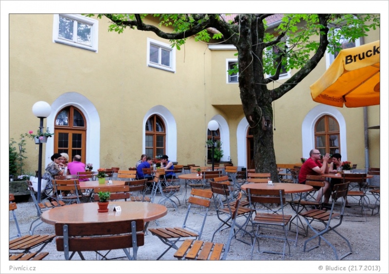 Naším dalším cílem je pivovarská restaurace pivovaru Bruckmüller – Bruckmüller Bräuwirtshaus. Pěkný starý pivovar v rozlehlém komplexu budov, na jehož dvoře se nachází pivovarská zahrádka opět uzavřená zdmi domů, ale s pěknými košatými stromy, které poskytují příjemný chládek. Z rozsáhlé nabídky si zde vybíráme Kellerbier a Dunkel. Obě piva jsou sice na náš vkus poněkud sladší, ale celkem pitelná. Na cestu si ještě dáváme napůl pšenici. Také poněkud sladší, ale jinak v pohodě. Celkově jsou piva na Bavorsko taková průměrná, ale číšník je příjemný a rychlý, což nám po zkušenosti z Winkler Brauwirtu zvedlo náladu.