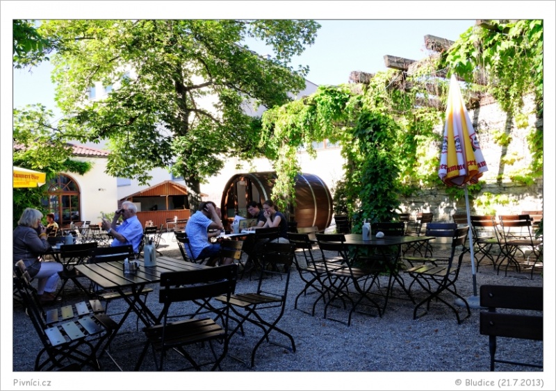 Zde narážíme na první alespoň trochu poctivou pivní zahrádku s několika kaštany a lípami, nic velkého, ale posezení je to příjemné. Piva do nás sice padnou vzhledem k žízni rychle, ale ve výsledku nám vlastně ani moc nechutnají. Ještě celkem dobrá je pšenice, jen by mohla mít vyšší říz. Polotmavý Pandurenblut a světlý Hell jsou méně chutná piva, i na náš vkus je v nich příliš výrazný diacetyl, což snižuje pitelnost a o nějakém velkém osvěžení si můžeme nechat jen zdát.