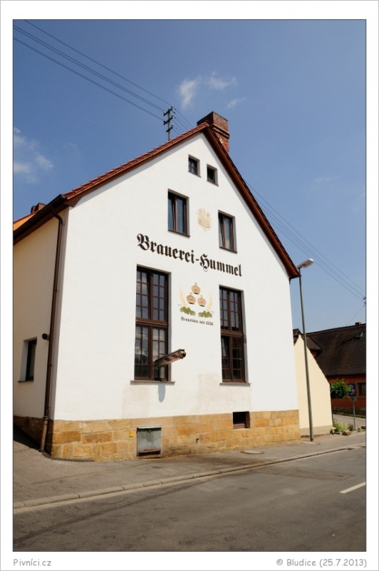 Prvním je pivovar Hummel, ke kterému dorážíme před polednem. Je zrovna čas oběda a zahrádka je dosti zaplněná lidmi, kteří zašli na něco k snědku. Posezení je zde velmi příjemné. Tentokrát se nejedná o zahrádku s okýnkem, ale mezi stoly kmitají příjemné číšnice, které roznáší piva a obrovské porce jídla. Dávám si skvěle pitelný a čerstvý Kellerbier. Marley volí cestu ochutnavače a dává si postupně malý Pils, Märzen a sezónní Festbier. Všechna velmi dobrá.