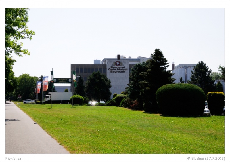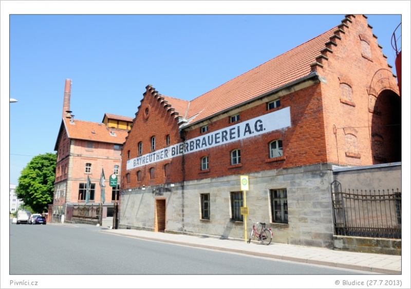 Cestou přes Bayreuth se ještě zajedeme podívat na staré budovy pivovaru Maisel. Dnes se v těchto prostorách nalézá pivovarské muzeum, ale vzhledem k tomu, že otevírá až odpoledne a navíc bychom museli řešit ustájení kol, ani o jeho návštěvě neuvažujeme. Pouze nakoukneme do vstupních prostor a vyfotíme si krásné zachované budovy. O kousek dál se nachází taktéž již nefunkční pivovar Bayreuther Bierbrauerei, pod kterým pro změnu můžete navštívit staré pivovarské sklepy. I tuto atrakci si necháváme ujít. Zpátky to vezmeme z druhé strany a prohlédneme si také moderní verzi pivovaru Maisel, kde se momentálně vaří piva, která byla dříve vařena ve dvou výše zmíněných starých pivovarech. Chvilku přemýšlíme, zda zaskočit na Maisela do místního Herzogkeller, ale nakonec se nám moc nechce ztrácet čas průmyslováky, které v podstatě skoro všechny známe. Navíc keller vypadá dost prázdně a pustě.