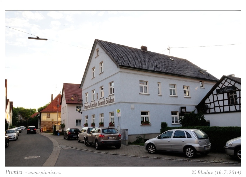 Druhým pivovarem je Hölzlein s vlastní restaurací a příjemným posezením na zahrádce na dvoře. Necháváme si natočit jeden Vollbier ze samospádového kohoutku přímo ve stěně. Pro pivo si lidé chodí sami dovnitř, jídlo vám na zahrádku po objednání donesou. Pivo je moc fajn, sice trochu sladší a sladovější, ale příjemně čerstvé a pije se moc dobře. Zahrádka je plná a téměř všichni lidé se nacpávají pečenými kuřaty a řízky. Jídlo vypadá velmi dobře a je i celkem levné. My jsme ale ještě nacpaní kolene z Höniga. Pokud se sem někdy příště vrátíme, musíme otestovat místní kuře.
