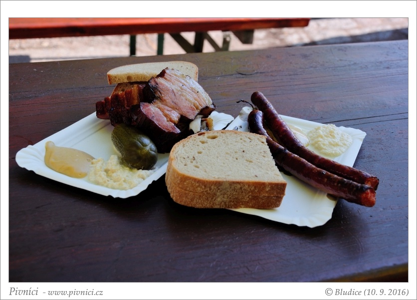 Jídlo bylo klasicky orientováno prakticky jen na masožrouty. Bůček byl tradičně chutný a šťavnatý, i cigáro z grilu nám chutnalo. Na závěr jsme se ještě dorazili škvarky se sádlem, byly syté a výborné a dobrým domácím koláčkem. Do Černokosteleckého pivováru si prostě s sebou svačiny, jak tomu je u jiných festivalů s tragickou nabídkou jídla, nemusíte brát… tedy pokud nejste vegani jako naši dva spolupijani.