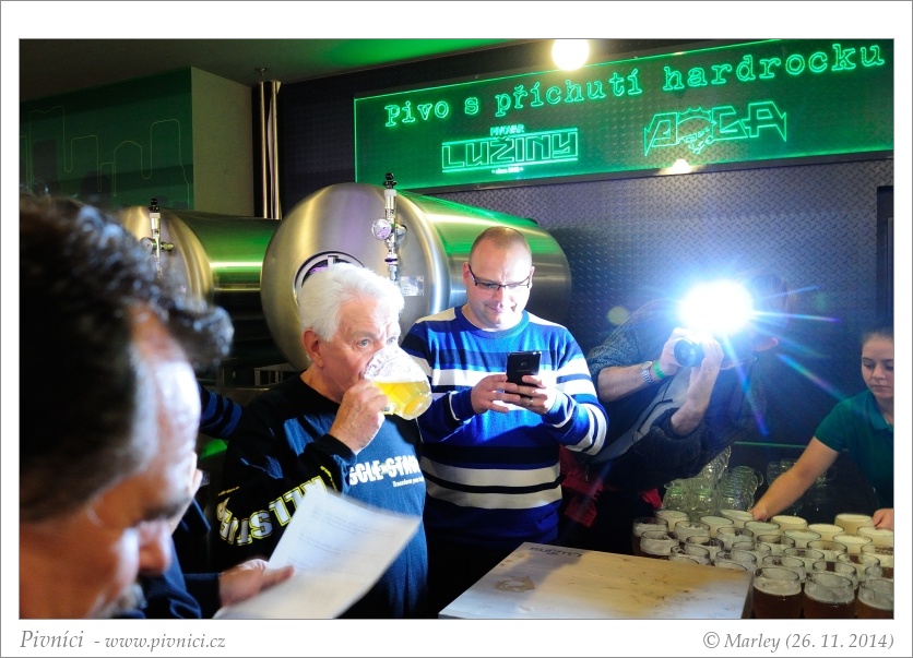 A jaká jsou piva? Momentálně jich mají v Lužinách na čepu čtyři druhy. Světlá jedenáctka byla chmelově bylinná (skoro přímo bylinková), sladová a celkem kvasnicová. Fajn pivo, dobře pitelné. Při druhé návštěvě bylo pivo čistší, mnohem méně kvasnicové, ve výsledku o něco chutnější a pitelnější. Jantarová dvanáctka byla sladově toustová, lehce karamelová, bylinná. V chuti trochu sladší, ale pila se slušně. O pět dní později byla také o něco lepší. Polotmavá třináctka byla celkem podobná dvanáctce (moc nechápeme, proč pivovar dělá dvě tak podobná piva), ale ještě o něco karamelovější a o poznání sladší. Ale pít se vcelku dala. Posledním pivem byl Světlý LU-Ale, což by měl být polotmavý ejl belgického typu (slovem „světlý“ je zřejmě myšlen překlad z anglického Pale Ale). Hodně sladové a karamelové pivo, zajímavě ovocné (pomerančová kůra, broskve, i nějaké kandované a lesní ovoce). Bylo dosti sladké, ale pilo se ještě relativně slušně. Škoda, že sladkost něco nevyvažovalo, třeba vyšší říz či více chmelu.