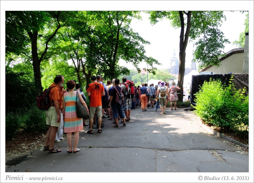 My jsme si, jako již tradičně, vybrali pro svou návštěvu festivalu sobotu. Je pravda, že minulý rok jsme trochu litovali, že jsme nevyrazili již v pátek. V sobotu totiž byla některá piva vypita. Letos jsme ale měli štěstí. Téměř všechna piva přežila nájezdy žíznivých pátečních davů a počkala na nás i do druhého dne. Některé pivovary se pochlapily a na festival přivezly více soudků nežli povinné dvě padesátky. Vzhledem k tomu, že sudy piva na festival dodávají zdarma a jediný užitek, který z toho mají, je pouze reklama, je těmto štědrým mužům a ženám, kteří nás, sobotní návštěvníky, neochudili o možnost ochutnat jejich pivo, nutné vzdát hold. Letos to byl například pivovar Matuška a tradičně také Strahovský pivovar, který každým rokem srdnatě naráží nové sudy a točí až do uzavření brány festivalu.