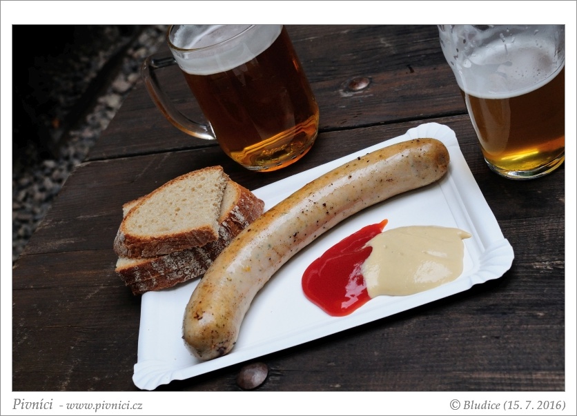 Krom pivovarských stánků tu bylo zřejmě vše jako při běžném provozu – bar s pivy převážně ze Zemského pivovaru, okénko se základním jídlem, bar s Gambrinusem a menší bar, zřejmě s Plzní, nějakými koktejly a rozlévaným alkoholem. Jídlo příliš lahodně nevypadalo – nějaká masa, klobásy či hranolky, nakonec jsme zvolili to nejjedleji vypadající – bílou klobásu. Jíst se to dalo, ale psát o tom domů nebudeme.