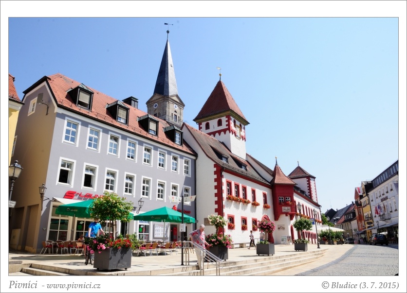 Z Chebu nám jede osobák do Marktredwitzu v půl jedenácté. Tentokrát už to nejsou České dráhy, ale Trilex, takže jedeme na čas. Vlak je pohodlný, příjemně klimatizovaný a nízkopodlažní. Pro cyklisty ideál. Do Marktredwitzu přijíždíme také na čas a rovnou vyrážíme na kolech do centra městečka, kde se nachází Zoigl Am Alten Rathaus. Dnes to bohužel podle jejich Zoigl kalendáře vypadá, že Zoigl na čepu není, a když projíždíme okolo, je stejně zavřeno, i když venku už jsou rozložené stolky a židle. Na čepu zde mívají Wolframův Zoigl, který dobře známe, takže uděláme jen pár fotek a pokračujeme dál do hospody Am Strand, což je pivovarská restaurace pivovaru Nothhaft.