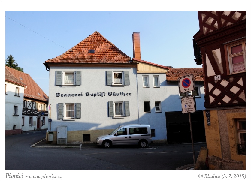 Vystupujeme v Burgunstadtu, kde se nachází pivovar Günther. Zajedeme se na něj podívat. Je to nová a moderní budova stojící vedle Netto Marketu. Pivovarský obchod bohužel zavřel už v šest hodin, ale ve městě, v místě, kde se nachází původní pivovarské budovy, by měla být pivovarská restaurace, která by měla mít otevřeno od šesti hodin. Měla by být a měla by mít, nicméně dveře hospody jsou uzavřené a nic nenasvědčuje tomu, že by se to mělo v nejbližší době změnit,