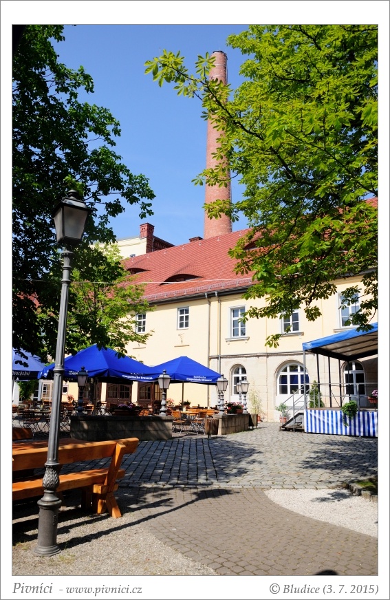 Do Kulmbachu dojíždíme naštěstí na čas. Rádi opouštíme vypečený vlak a vrháme se do vedra velkoměsta. Naše první kroky nás zavedou k současnému pivovaru Kulmbacher. Uděláme pár fotek a zamíříme přes město k muzeu Kulmbachera. Muzeum s populární skleněnou varnou sice navštívit neplánujeme, ale máme v plánu ochutnat místní Museumbier a také, vzhledem k pěknému prostředí, ulovit něco k jídlu. Plán se nám však úplně nezdaří. Na velmi pěkné zahrádce pod košatými kaštany téměř nikdo není, jen z reproduktorů hraje neposlouchatelný popík. Výdejní okénka s jídlem jsou zavřená, ačkoliv je pátek odpoledne. Jídlo tedy nevyšlo, ale dáváme si alespoň pivo. Je to takový ucházející karamelový slaďouš. Moc nás nezaujme. Alespoň na toaletách doplníme vodu a jedeme dál.