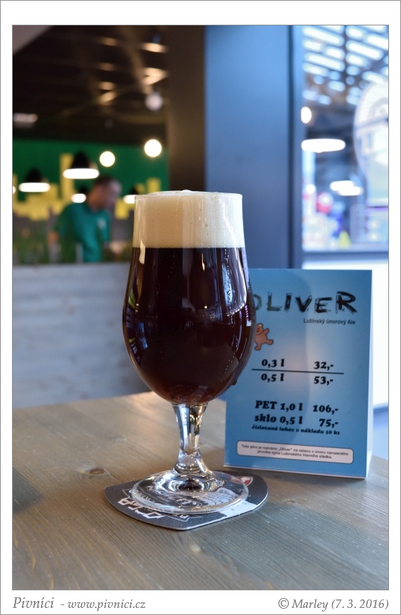 V Lužinách připravili další ejl, tentokráte jde o jejich první tmavý – šestnáctku Olivera. Je to celkem zakalené pivo, čokoládové, citrusové, s tóny lesního ovoce a kvasnic. Hořkost lehce ulpívá, pivo by potřebovalo doladit. Ale to vlastně o Lužinských ejlech říkáme od počátku a nějak se nic nemění. Příště asi raději zkontrolujeme, jak jsou na tom s kvalitou ležáky.