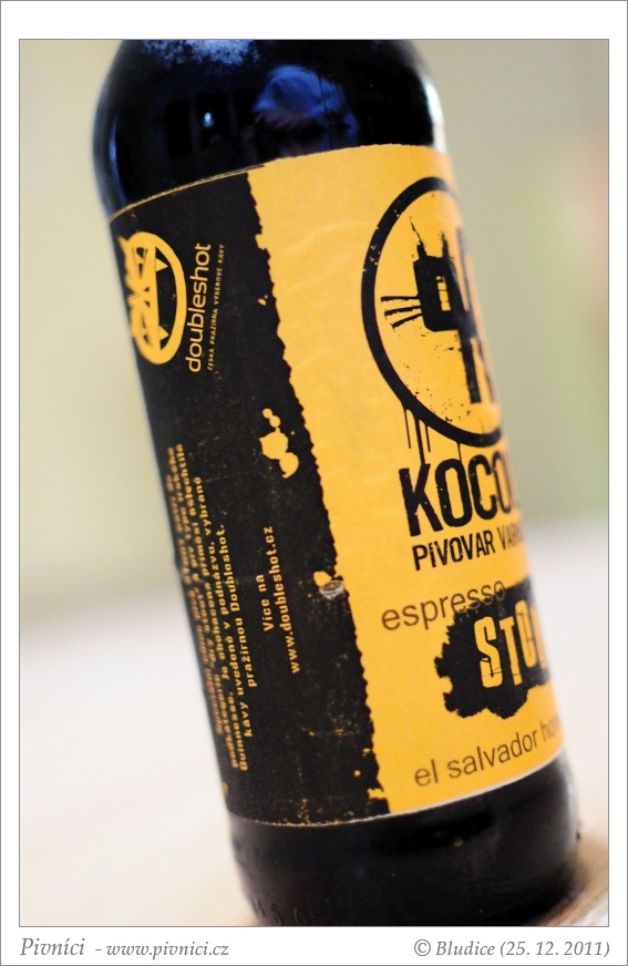 Na další české kávové pivo jsme narazili při předvánočním oprašování poliček v Pivní rozmanitosti. Byla to jediná třetinková lahev Espresso Stoutu z pivovaru Kocour. Také při výrobě tohoto piva bylo použito poctivé kávy od Doubleshotů. Pivovar dokonce zřejmě vyrobil různé stouty lišící se druhem použité kávy. My jsme měli štěstí na Espresso Stout Salvador s kávou El Salvador Honey Bourbon (na Ratebeeru můžete narazit také na Espresso Stout Kenia). Ve vůni bylo výrazně kávové, s tóny hořké čokolády a lehce peprné. Té úžasné vůně jsem se nemohla nabažit. Chuť už mě však trochu zklamala. Výrazná kyselost, v závěru s příjemným dozníváním kávy a praženého sladu. Bohužel trochu vodnaté, přesto zajímavé a dobré pivo, které stojí za pozornost.