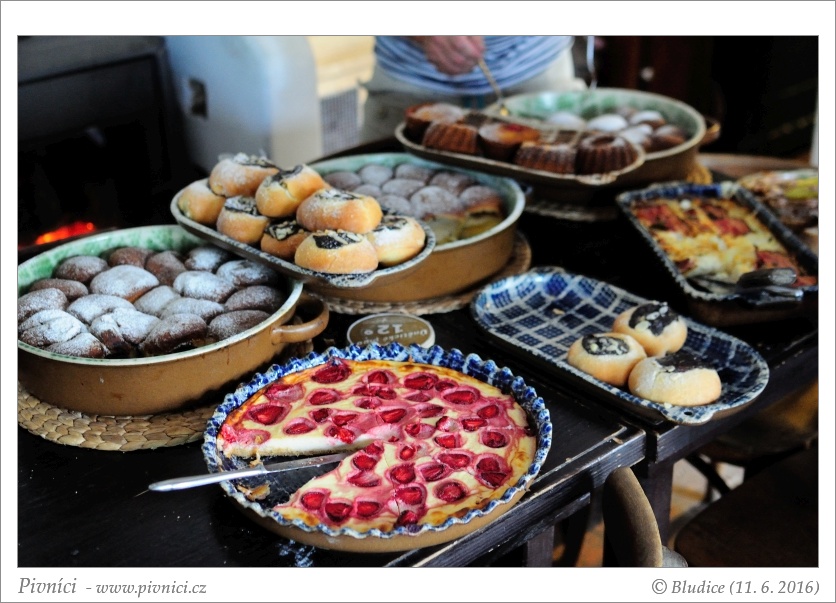 Tentokráte vynecháváme návštěvu Únětického pivovaru a míříme na baštu do hospůdky U Lasíků, která nám minule tak učarovala. Dáváme si další dvě únětická piva, jsou zde o něco čiřejší a chutnají nám o malinko více než na Suchdole. A k obědu jitrnici, koláč s nivou a klobásou, koláč s olivami, koláč s mákem a švestkami a jahodový cheesekake. Vše chutné, sladké nám přijde lepší… příště vyzkoušíme další druhy, nabídka je tu opravdu rozmanitá.