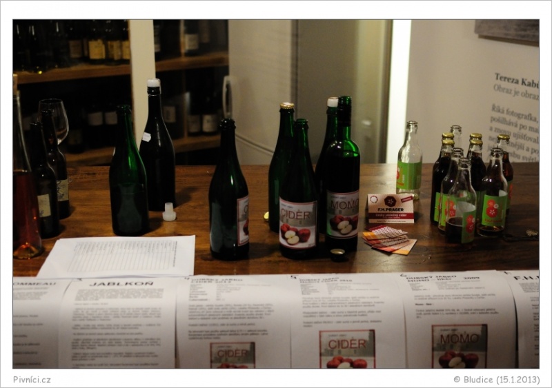 Degustace probíhala v pěkných sklepních prostorách Veltlinu. Účastníci se volně pohybovali mezi třemi stolky, u nichž se prezentovali jednotliví výrobci, z nichž většina byla přítomna osobně a ochotně svůj produkt ochutnávajícím představila. Pokud člověk nenarazil přímo na výrobce, mohl si veškeré a velmi podrobné informace o jednotlivých ciderech přečíst na vyvěšených degustačních listech, které jsou i nyní ke stažení na stránkách Winepunk. V listech si můžete mimo jiné přečíst z jakých odrůd jablek (případně i hrušek) byl nápoj vyroben, kde byla jablka sklizena, zda byly jabloně ošetřeny postřiky, kolik litrů moštu bylo vyprodukováno a kolik ho zůstalo po útoku dětí (Kokořínský cider :)), zda a jaké kvasinky byly použity k zakvašení (zajímavé pro nás ciderové analfabety byla skutečnost, že někteří výrobci používali kulturní nakoupené kvasinky ať už speciálně určené pro kvašení cideru, ale také vína, jiní prostě nechali cider kvasit pomocí divokých přírozených kvasinek), zda byl nápoj ošetřený sírou, zda proběhla sekundární fermentace, do jakých lahví byl stočen, jakým způsobem byly na lahev přilepeny etikety a tak dále a tak dále. Až nám ze všech těch informací šla hlava kolem.