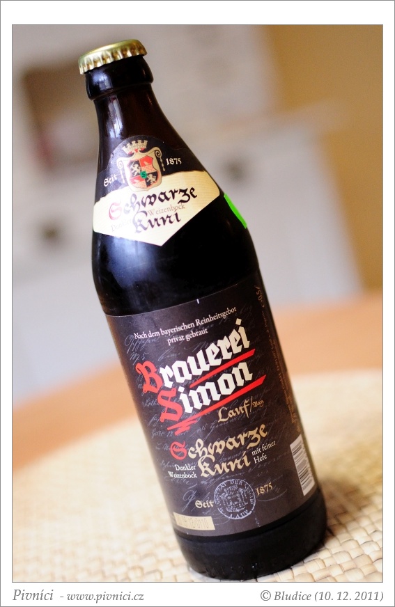Simon Schwarze Kuni Dunkler Weizenbock mě překvapil opravdu velmi nepříjemnou vůní. Zpočátku jakási myšina byla následována zemitostí, ovocné tóny se sice v pozadí projevovaly, ale měly nádech jakéhosi saponátu, ve vůni byla výrazná obilná složka. Zato v chuti mi to pivo vynahradilo. Nádherně karamelové, sladší, v pozadí lehce čokoládové tóny a v dochuti výrazně sušené ovoce a hořká čokoláda. Další mladé pivo, které potřebuje dozrát.