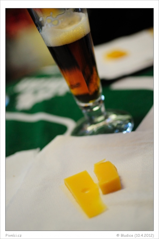 Degustací nás tentokrát provázel Víťa Dvořák známý pivařům pod přezdívkou Weetek, jakožto autor mnoha článků na stránkách Svět piva. Každý účastník vyfasoval papír se seznamem pěti vybraných kombinací piva a sýrů a mohlo se začít. Na úvod trocha povídání o tom, že pivo je nápoj, který lze párovat téměř s čímkoliv. S čímž každý, kdo tuší, jak chuťově rozsáhlý je svět piva, musí souhlasit. Padla poznámka o tom, že pivo je jako nápoj k párování se sýry mnohem vhodnější než víno. S čímž někteří z účastníků nesouhlasili a tak nakonec také vznikl návrh na uspořádání společného párování sýrů s pivem na jedné straně a vínem na straně druhé. Hmm, to by mohlo být zajímavé. Dostalo se nám také vysvětlení, že při párování jídla a nápojů hledáme buďto společný tón, nebo naopak výrazný kontrast. A samozřejmě také nesmím zapomenout na upozornění, že pokud byste si chtěli doma vyzkoušet párování sýrů a piva, je naprosto nezbytné zvolit kvalitní piva a kvalitní sýry. Párování eidamu z Normy s pivem s Lidlu nejspíš fungovat nebude.