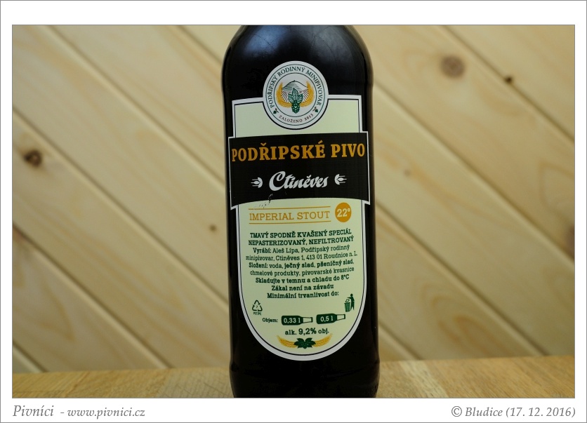 Dnes se v rámci pivních novinek podíváme jen na jeden pivovar. Podřipský pivovar z Ctiněvsi totiž přišel s něčím, co se v našich krajinách ještě nevyskytlo. Připravil pět druhů imperial stoutů, přičemž základní pivo bylo stejné, rozdíl byl v dozrávání – do tří z těchto pěti byly přidány různé dubové chipsy a do čtvrtého vanilka. Rozhodli jsme se tedy trochu plácnout přes kapsu, piva zakoupit, najednou ochutnat a porovnat.