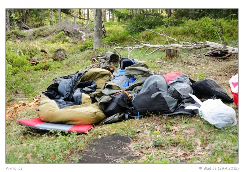 Z hraničního přechodu vyrážíme po modré turistické značce směr Luž, pod jejímiž svahy po šesti kilometrech padáme únavou a pod širým nebem usínáme ve společnosti petkového Sumečka a Samuraje.