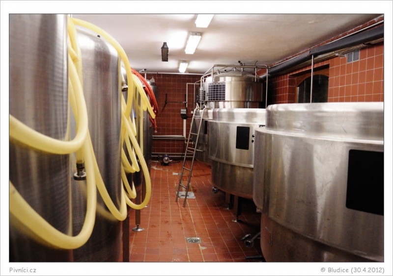 Při odchodu z pivovaru si ještě fotím vývěsní štít, načež jsme odchyceni místním domorodcem s dotazem, zda chceme vidět sklep. Proč ne? Autobus nám jede až za dlouho a další prostory pivovaru si prohlédneme rádi. Ve sklepě se nás ujímá mladý sládek, který zrovna stáčí pivo do sudů. Dostáváme ochutnat nový světlý ležák přímo z tanku. Pivo je velmi dobré, velmi pitelné a o poznání lepší, než to, co jsme ochutnali v restauraci.