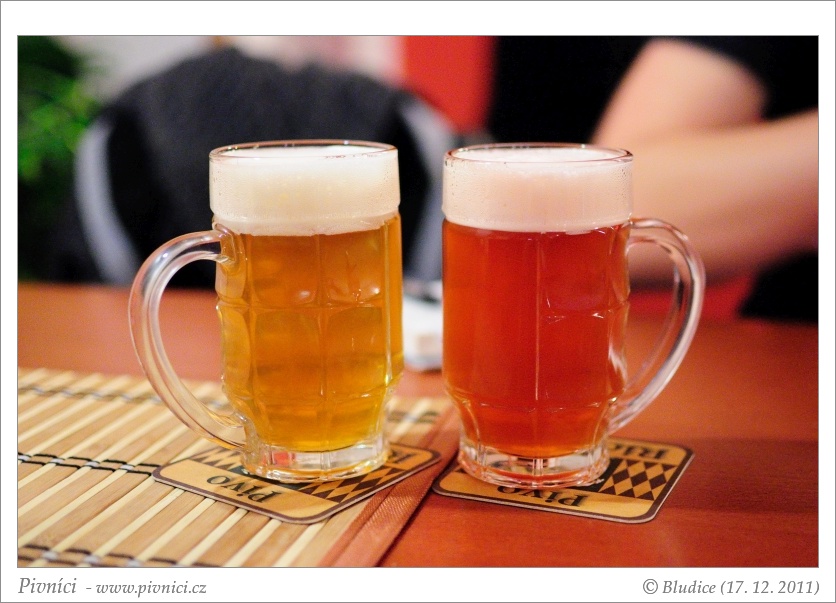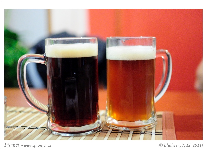 Po odložení těžkých báglů a předání vánočních dárků rodině jsme se vypravili do restaurace U Richarda 2 patřící známému brněnskému pivovaru U Richarda. Podnik je to příjemný, v minulosti jsme sem již párkrát zaskočili posedět. Obsluha byla velmi ochotná, všechny stoly zarezervované, což nám příliš nevadilo, neboť jsme se zde stavili pouze na dvě pivka. Ochutnali jsme jejich vánoční speciál, který jsme měli poprvé. Velmi dobrý speciál s příjemnými kávovými tóny u nějž oceňujeme to, že není sladký. Medový speciál jsme již dříve ochutnali a jelikož to bylo pivo, které nám zde kdysi chutnalo nejvíc, zkusili jej i nyní. Následovala pšenice bez citronu a višňové bez višní. Nevím čím to je, ale v téměř všech brněnských pivovarech vám prostě do pšenice automaticky hází plátky citronu. Pokud sem přijede člověk neznalý této skutečnosti, má smůlu. Nikdo se ho nezeptá, jestli citron chce, či nechce. Poučeni z předchozích návštěv Richarda a Pegase již tedy hned od dveří voláme: „A pšenici prosím bez citronu!“ U Richarda nadto pšenice není svrchně kvašené pšeničné pivo. Je to spodně kvašený ležák s přídavkem 30% pšeničného sladu. To, že takové pivo nabízí jako pšeničné, zdá se mi pro neznalého návštěvníka restaurace značně matoucí. V každém případě tentokrát mi tento pšeničný ležák zachutnal. Vůně i chuť byla příjemná a pivo velmi pitelné. Píši tentokrát, neboť při minulé návštěvě Richarda jsme narazili na opravdu velmi nepovedený kousek. U višňového ležáku tomu bylo naopak. Tentokrát mi vůbec nesednul svou „saponátovitostí“.