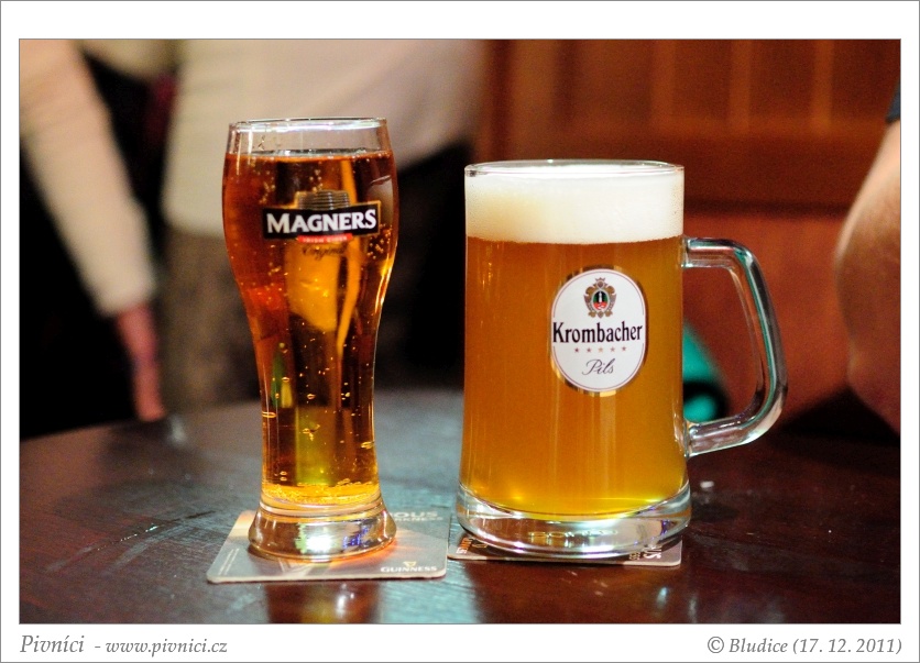 Hned při příchodu míjíme měděnou varnu, která stojí vedle vchodových dveří, a bez dlouhého rozmýšlení si sedáme k malému stolku blízko baru. Až později si uvědomujeme, že jsme si sedli do kuřácké části a v restauraci se nachází ještě část nekuřácká. Ta se nám však příliš nezamlouvá a tak se rozhodneme, že už prostě zůstaneme, tam kde jsme. K jídlu si dáváme pinkantní kuřecí křidýlka, která jsou velmi dobrá. Na začátek si objednáváme desítku Kateřinu a jedenáctku Kellyho. Desítka je světlá a skvělá. Na desítku nádherně plné tělo, optimální říz, výborně pitelná a krásně vyvážená. Vydařený kousek mezi desítkami. Také polotmavý Kelly není špatný. Jen je u něj méně příjemný nižší říz. Pokračujeme pšenicí a vánočním speciálem. U pšenice úplně zapomínám na žádost, aby mi do ní nedávali citron. Ale světe div se, dostávám pšenici krásně neposkvrněnou a bez citronu. Pšenice jest to silnější čtrnáctka a je velmi dobrá. Na můj vkus tedy poněkud sladší, ale u takto silného kousku to lze odpustit. Vánoční šestnáctka je dobře zvládnutý speciál, ale žádný zázrak.