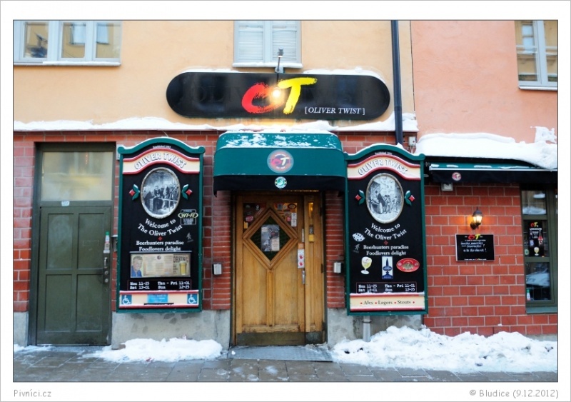 Dalším slavným Stockholmským barem, do kterého jsme zaskočili, je Oliver Twist. I zde jsme byli několikrát za účelem rekognoskace terénu. Ono, pokud si chcete dát někde pivo blížící se cenou za půl litru 300 Kč, tak si pořádně rozmýšlíte, jaké pivo a kde to bude. V pátek a v sobotu večer zde bylo narváno k prasknutí a místo nebylo pomalu ani na stojáka. My jsme sem tedy zašli v neděli v podvečer, kdy bylo relativně volno… na rozdíl od Akkuratu, kde v neděli večer probíhal koncert jakési místní slavné skupiny. Oliver Twist se nachází jenom pár kroků od Akkuratu a co se týče atmosféry a prostředí, jsou si oba bary velmi podobné. Však spolu také často spolupracují na různých zajímavých pivech. I Oliver Twist nabízí ve všední den v poledne meníčko, to jsme však neochutnali. Co jsme zde ochutnali byla další dvě skvělá švédská piva. Vynikající švédské Real Ale Skebo Hej Tomtegubbe (zde mají na čepu 3 Real Ale) a výborný ležák chmelený americkými chmely v čele s Chinookem Nynäshamns Tjockhult Tjinook. Další podnik, do kterého by měl pivní milovník objevující svět švédských piv zaskočit.