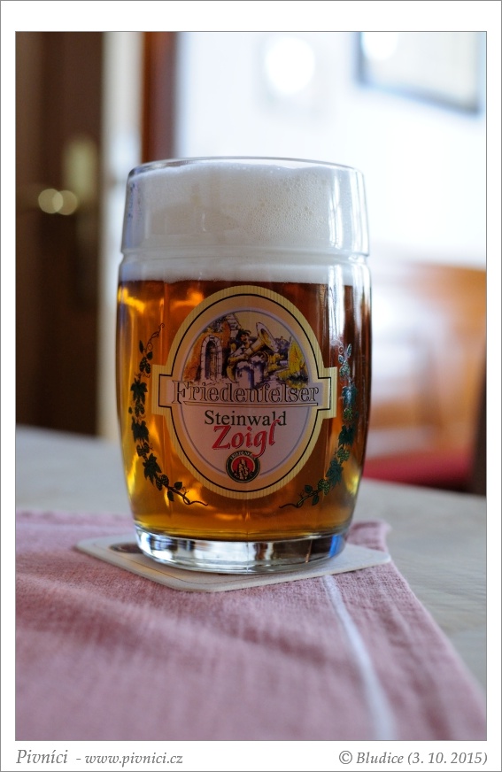 Je to půvabné místo s pěknou zahrádkou před starými kamennými budovami. Vzhledem k tomu, že svítí sluníčko a je příjemně teplý den pozdního babího léta, ani nejdeme dovnitř a sedáme si na zahrádku stejně jako naprostá většina místních hostů. Obsluhuje nás milá mladá slečna, která mluví plynně anglicky, kteroužto schopnost nám odhalí až po zaplacení, kdy se s námi dá krátce do řeči. Místní Zoigl je zvláštní, hodně odlišný od všech ostatních. Karamelovější, s lehce dřevitými tóny a lehce naoxidovaný, jakoby ležel někde ve dřevě, s jemným řízem a méně stabilní pěnou. Osobitý, ale v kladném slova smyslu, zajímavý a velmi dobře pitelný. K Zoiglu si dáváme obložený talíř s výbornými uzeninami a skvělým domácím chlebem. Chutné pivo, chutné jídlo, usměvavá obsluha a krásné prostředí. Sem se určitě ještě někdy rádi vrátíme.