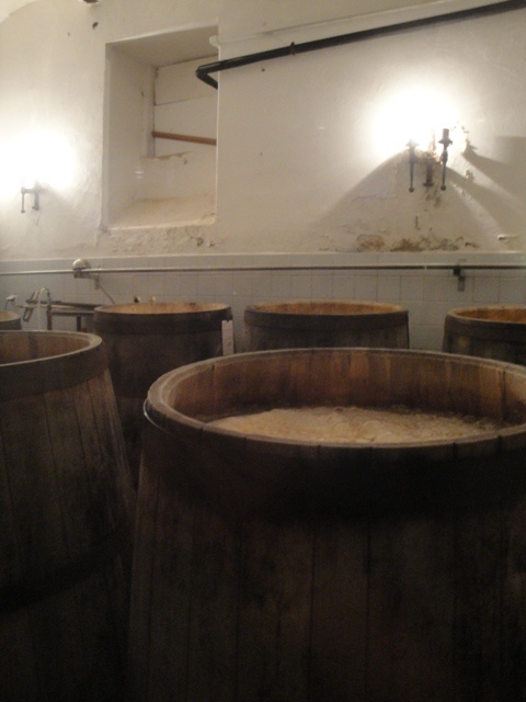 Před čtvrtou hodinou jsme se se Slepým krtkem rozloučili a vyrazili do blízkých Dětenic. Zde se nalézá dosti kontroverzní restaurace Středověká krčma Dětenice. Přes všechny negativní recenze, které jsme si přečetli na internetu, jsme byli rozhodnuti ochutnat pivo, které vyrábějí přímo v areálu zámku Dětenice. Pivo je prý vyráběno starou tradičné metodou. Vařeno je na otevřeném ohni a kvasí i leží v dubových sudech… A je tomu opravdu tak, otevřenými dveřmi jsme zahlédli kvasné nádoby, v nichž pracovaly kvasinky na výrobě dalšího piva pro návštěvníky krčmy.