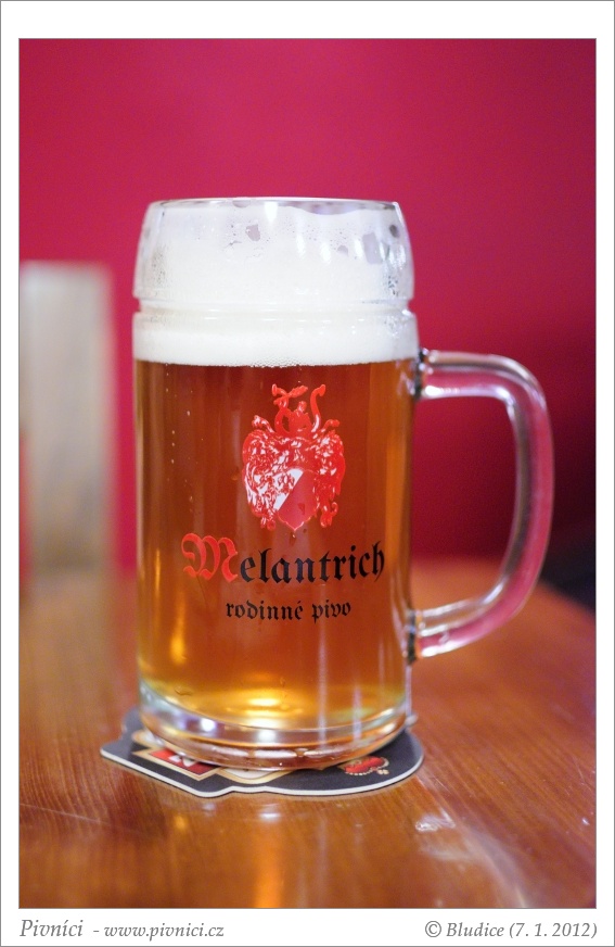 Ze Staročeské restaurace se přesouváme na druhou stranu Václavského náměstí do restaurace v Melantrichu. Na rozdíl od Staročeské restaurace, kde kromě Šroubkovy desítky točí už pouze Budvar, v Melantrichu nabízejí piv hned několik. Výběr není nijak oslnivý, jedná se o pivní klasiky z českých pivovarů a trochu mě jímá i podezření, že výtoč piv zde nebude úplně ideální. V době, kdy jsme v restauraci byli, si turisté dávali spíše víno a různé destiláty. Pivo stálo na stolech málokde. Kromě klasických piv, však také mají na čepu vlastní pivo, které pro ně vaří v Sokolovském pivovaru Permon. Pivo se jmenuje Melantrich a jedná se o tradiční světlý ležák, který dostáváme v pěkném půllitru. Pivo samo nám však moc nejede. Je téměř bez řízu a v chuti je pro mě nepříjemná kořeněně zeleninová hořkost. O návštěvě tohoto podniku si můžete přečíst také na blogu Pivního Filosofa.
