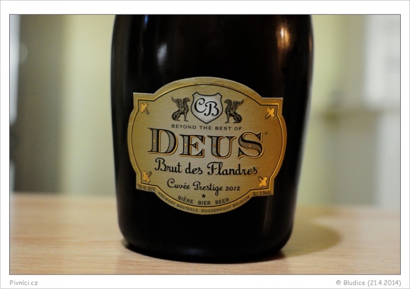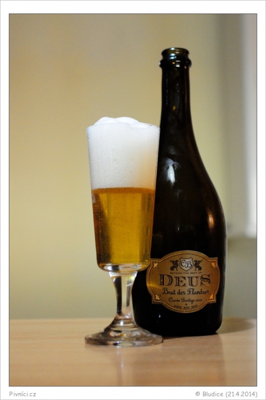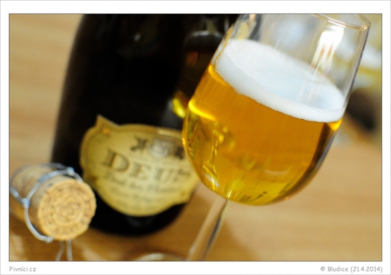 Posledním námi ochutnaným pivem byl DeuS – Brut des Flandres, zřejmě nejslavnější zástupce této kategorie pivních šampaňských, vařený v pivovaru Bosteels (ten má na svědomí například i výtečná piva Tripel Karmeliet a Kwak). Vyrábí se velmi podobně jako Malheur Bière Brut, včetně zrání, remuáže a degoržování ve Francii, opět za použití šampaňských kvasinek. A stejně jako Malheur spatřil světlo světa v roce 2001, oba pivovary se přou, který z nich byl vlastně první. Nápad na takovéto šampaňské pivo pochází údajně z hlavy Michaela Jacksona, který oba pivovary na přelomu století navštívil. Pivo má 11,5% alkoholu, láhev samotná je opravdu moc pěkná, působí dojmem něčeho luxusního. S dřívější etiketou ve tvaru erbu celkem připomínala známé šampaňské Dom Pérignon.