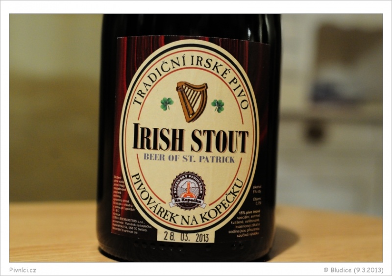 K příležitosti dne Svatého Patrika (což je pozítří) uvařil svitavský pivovar Na Kopečku speciální pivo. Je to (jak jinak) svrchně kvašený stout – Irish Stout. K dispozici je jak v točené podobě, tak ve fešných „matuškovských“ 0,75 l lahvích. My neodolali a jednu láhev jsme zakoupili. Pivo je to výrazně pražené, kávové… až snad směrem do kouřových tónů. Nesladké, celkem hořké a dobře pitelné. Opravdu vydařený Stout, Na Kopečku taky umí.
