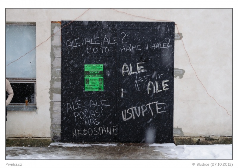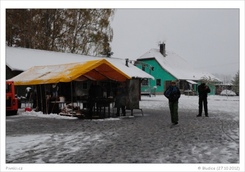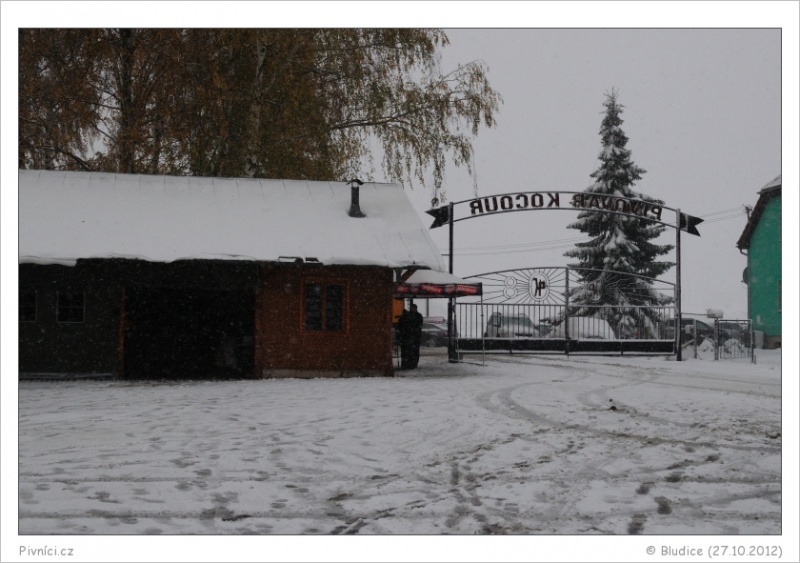 Chvilku jsme zvažovali, zda do Varnsdorfu vůbec za těchto podmínek vyrazit. Nakonec jsme se rozhodli pro cestu vlakem, časově sice delší, ale ve skutečnosti vlastně pohodlnější. Cesta sice byla trochu komplikovanější díky zpoždění půl hodiny a tomu, že nám v Rybništi ujel navazující vlak. Naštěstí se vše vyřešilo přestupem v Rumburku na autobus, který nás a několik dalších lidí mířících do Kocoura navíc ochotně vysadil na autobusové zastávce blízko pivovaru. A tak jsme byli v Kocourovi jako na koni chvilku před druhou hodinou… takové menší zpoždění ve srovnání s plánovaným příjezdem v jedenáct.