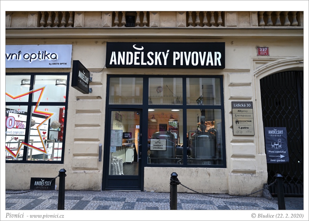 Restaurační pivovar na Smíchově, kousek od stanice metra Anděl. V horní místnůstce je pár stolů, výčep a varna pivovaru, dole jsou větší prostory pod klenutými cihlovými stropy s mnoha místy k sezení a také zbytkem pivovarské technologie. V teplých měsících je vzadu na dvorku fajn zahrádka.Obsluha (2 - průměr):