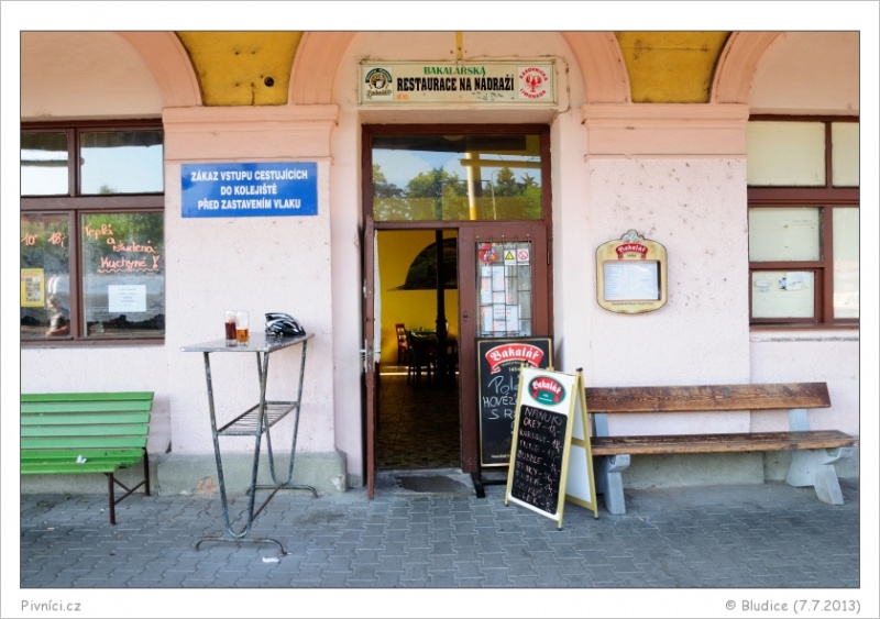 Prostě klasická nádražka, uvnitř stoly s ubrusy, venku plechový stoleček pro na vlak spěchající hosty. Ale celkem čisté, v pohodě.Obsluha (3 - dobré):
