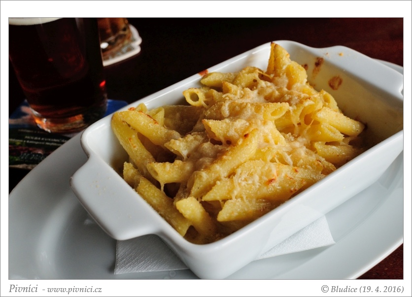 Specializují se zde především na burgery, ale v jídelním lístku najdete i další jídla. Přes týden je k dispozici denní menu, ale nejde o žádné nudné „guláš s knedlíkem“, ale zajímavá jídla. Ceny lehce vyšší. Zkusili jsme krůtí rolku s medvědím česnekem i hráškovým pyré a makaróny se sýrem a salátem. Obojí výborné a syté. Burgery jsme měli na dřívější adrese, než se podnik přestěhoval, byly moc dobré, už se těšíme, až si je dáme znovu.Pivo (3,5 - velmi dobré):