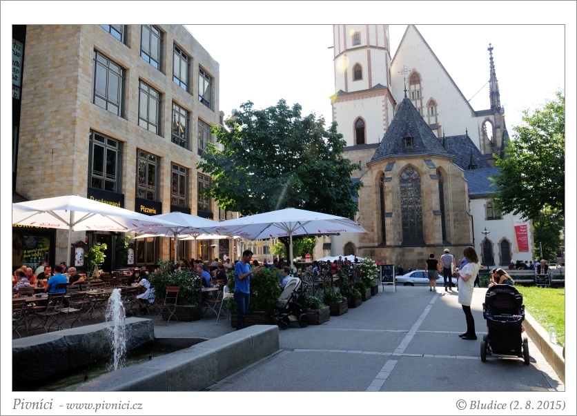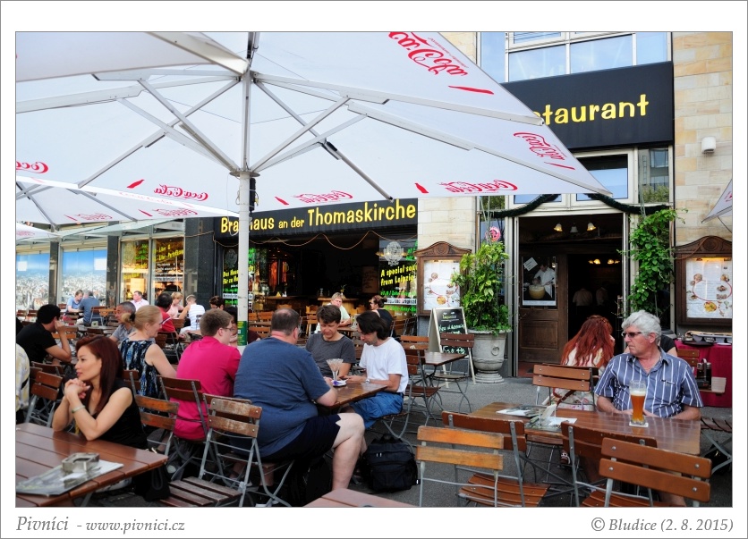 Pivovarská restaurace u kostela v centru Lipska. Je to vlastně taková klasická italská pizzerie, akorát uvnitř naleznete kromě pece na pizzu i měděnou varnu. Venku je normální zahrádka ve stínu slunečníku.Obsluha (4 - výborné):