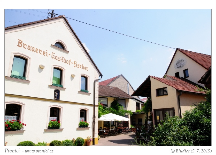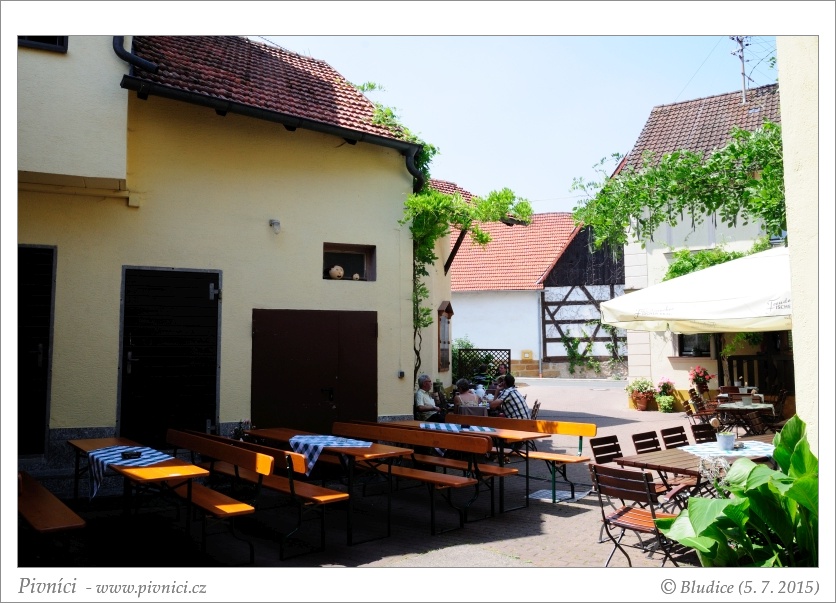 … projet v pohodě. Ve Freudenecku je pivovar Fischer. Zahrádka je téměř prázdná. Kromě nás už zde jsou pouze další dva …