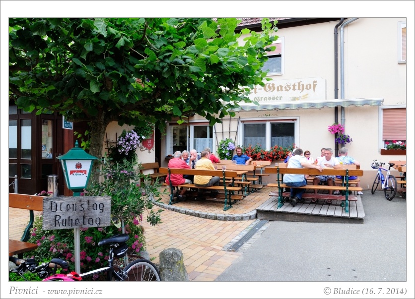 … až do Huppendorfu, kde se nachází pivovar Grasser a hned naproti pivovaru i pivovarská restaurace. Před restaurací je …