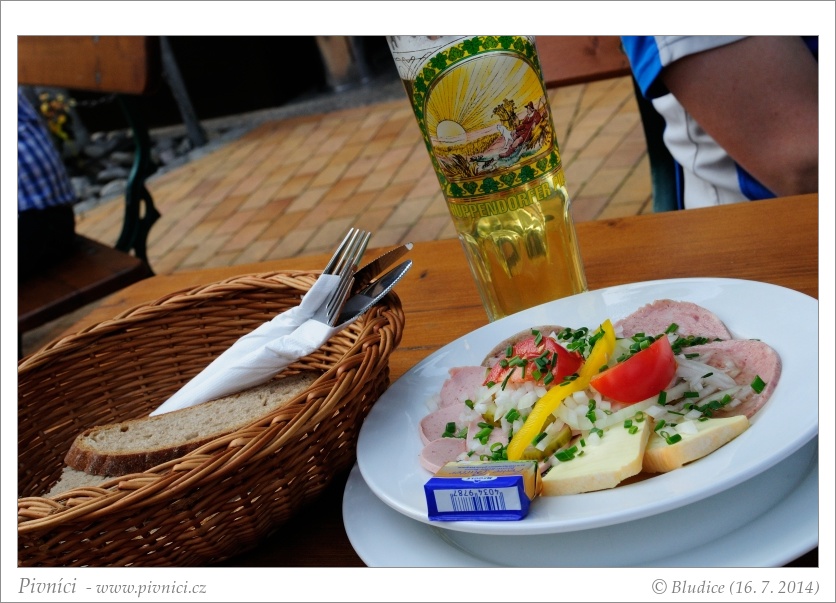 Všemožné pochutiny k pivu, pár větších jídel. Ceny průměrné až kapku nižší. Ochutnali jsme 4-er teller, směs tlačenek, wuřtů, aromatického sýra a bierwurstu. Fajn, příjemné. Ale příště si raději dáme za podobnou cenu půlku kuřete.Pivo (3 - dobré):