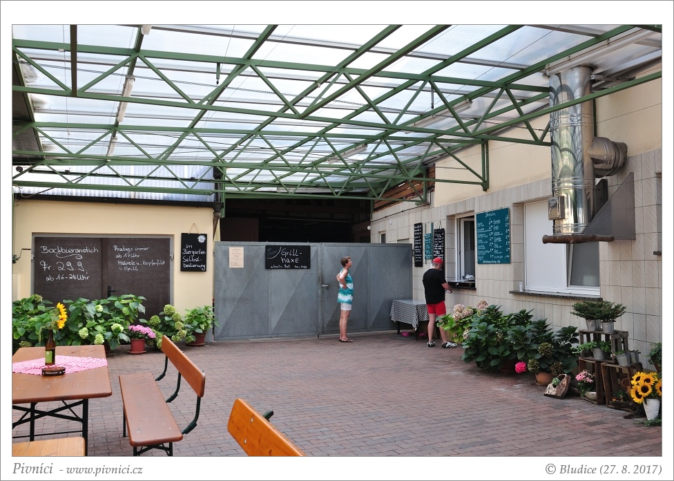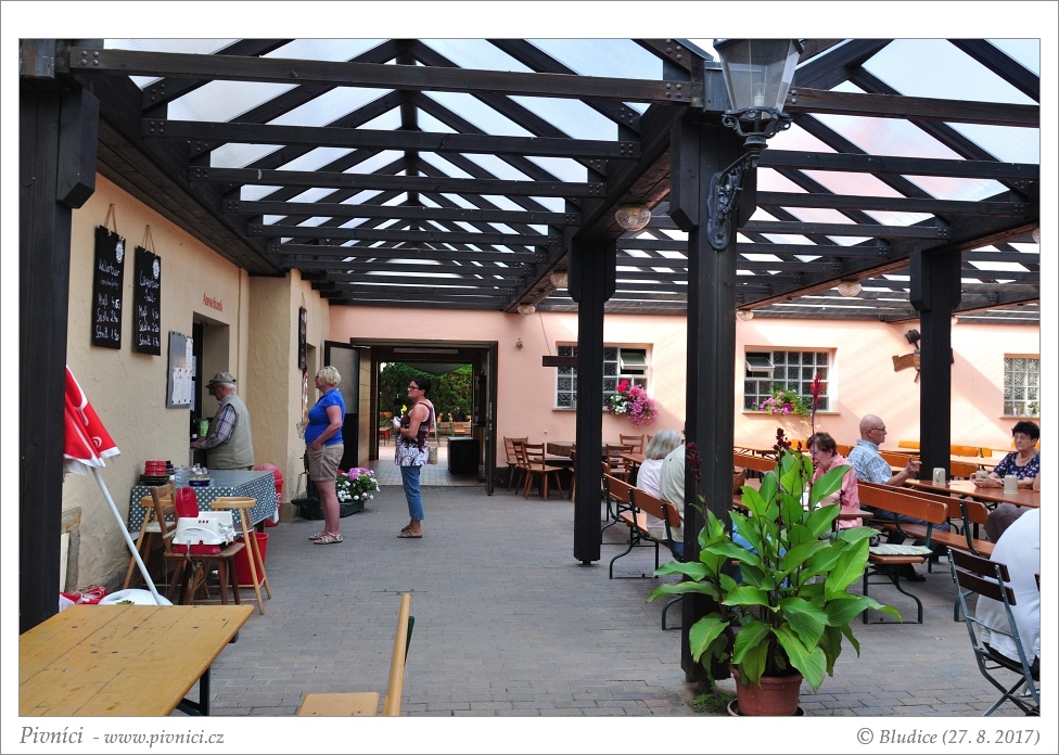 Pivovárek u hlavní silnice, uvnitř je restaurace, vedle ní plexisklem zastřešená zahrádka. V létě při pařícím slunci je to zde trochu jako ve skleníku. Později odpoledne se otevírá i větší pivní zahrada vzadu na dvoře za budovami pivovaru. Tam je už o poznání lépe – sedí se u stolků ve stínu stromů a slunečníků, moc fajn místo.Obsluha (4 - výborné):