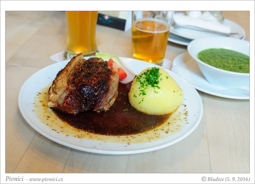 Klasická bavorská jídla, ceny průměrné. Dali jsme si Schäuferlu s pivní omáčkou, byla parádní, šťavnatá, krásně propečená, extra sytá. Vrchní krusta byla možná až příliš křupavá, ale stejně šlo o nejlepší Schäuferlu, co jsme kdy měli a jedno z nejlepších jídel v bavorských hospodách vůbec.Pivo (4 - výborné):