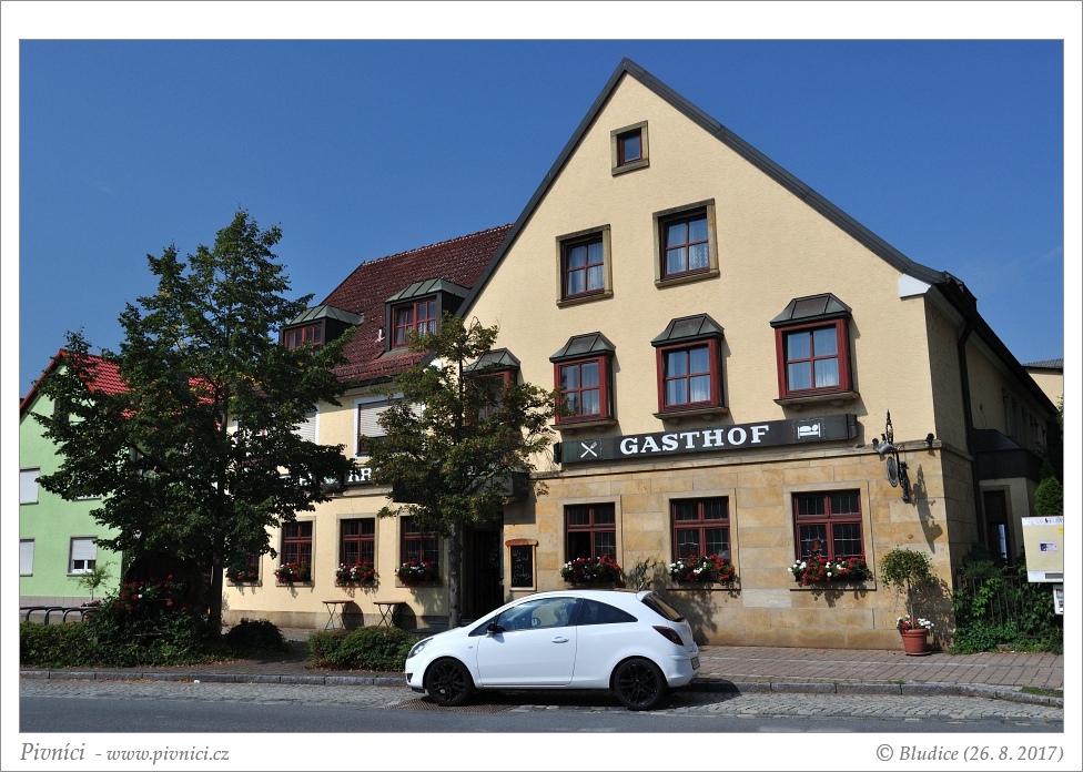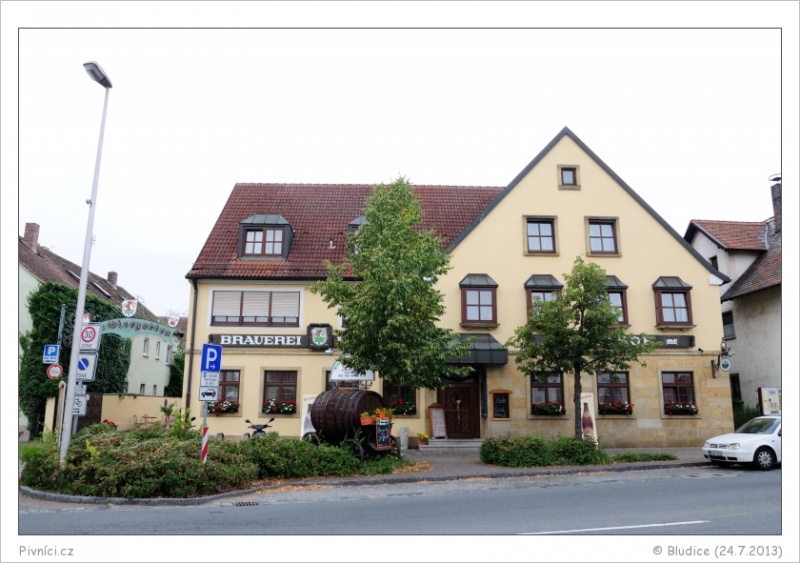 Pivovar s restaurací ve městě Hirschaid. Vzadu za pivovarem se nachází pěkná zahrádka, uprostřed ní se tyčí rozložitá lípa. Je to tu pěkně vyzdobené, možná lehce kýčovité, ale sedí se tu příjemně.Obsluha (3,5 - velmi dobré):