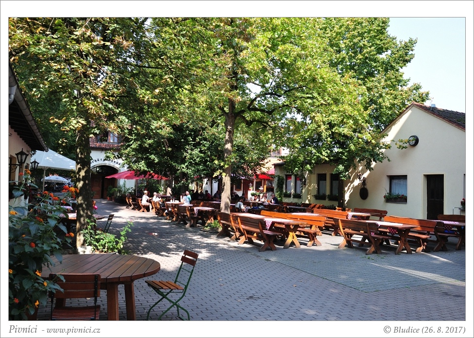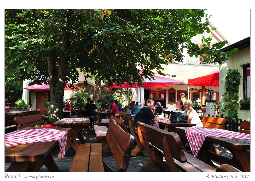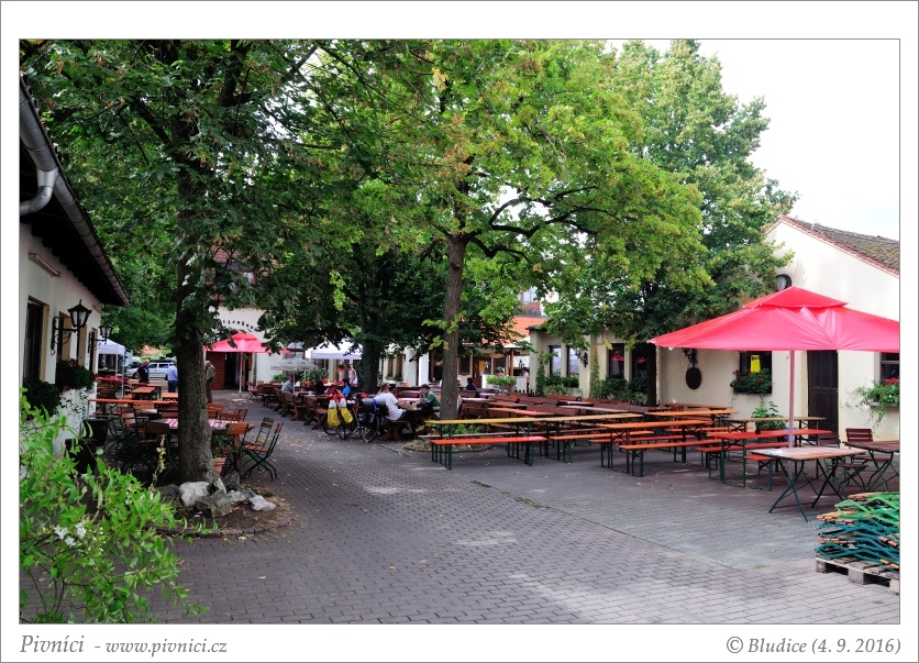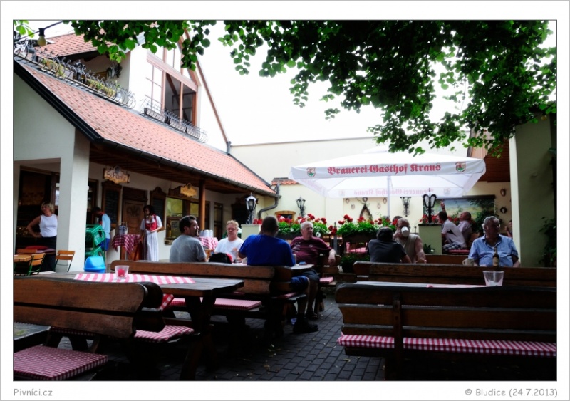 … déšť naštěstí polevuje. Zajíždíme do pivovaru Kraus. Zahrádka vzadu za pivovarem je i přes momentálně nejisté počasí …
