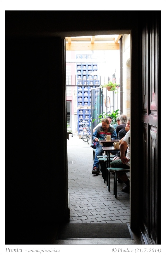 Hezký větší dům v historickém centru města, starý, pěkně opravený. Uvnitř je to trošku stísněnější, ale útulné – dřevěné obložení i stolky, měděné lampy ve tvaru varny. Fajn posezení je u stolků před hospodou, zahrádka je i vzadu za hospůdkou na dvoře. Už brzy po otevření se to zde plní osobitými štamgasty, kteří na příchozí podezřívavě koukají. Kouzelná atmosféra, kameninové půllitry se zde plní jako o život už před polednem.Obsluha (3 - dobré):