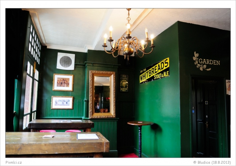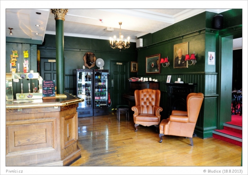 Pěkný středně velký pub v klidné uličce v centru města. Uvnitř je to vyzdobené ve starším stylu, s křesílky, čalouněnými sedátky a židličkami. Stěny jsou zdobeny starými obrazy a reklamami na často již neexistující piva a pivovary. Bar je pěkný dřevěný, s trochou zlata a pěknými pípami. Hraje tu poklidná pop hudba na pozadí. Prostě ideální, nic bychom neměnili.Obsluha (3,5 - velmi dobré):